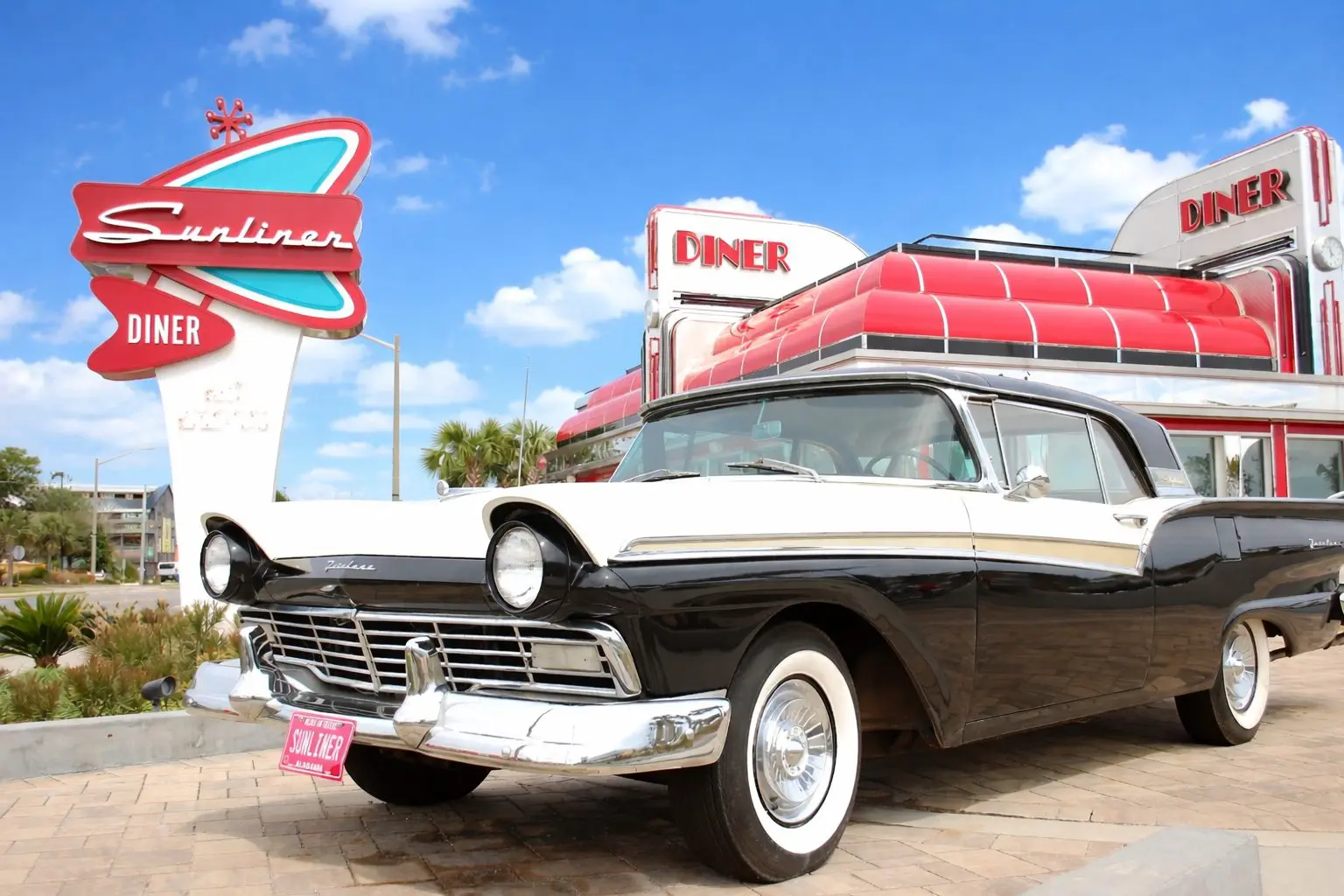 With our retro newspaper menus, collector cars, hand-spun milkshakes, classic diner cuisine and breakfast all-day, The Sunliner Diner is sure to become your favorite spot to hang out- It’s Guaranteed! Take a blast to the past with your family and friends, come and see what all the buzz is about- the fun never ends! Visit our Gift Shop to bring your memories of a swell time home with you!