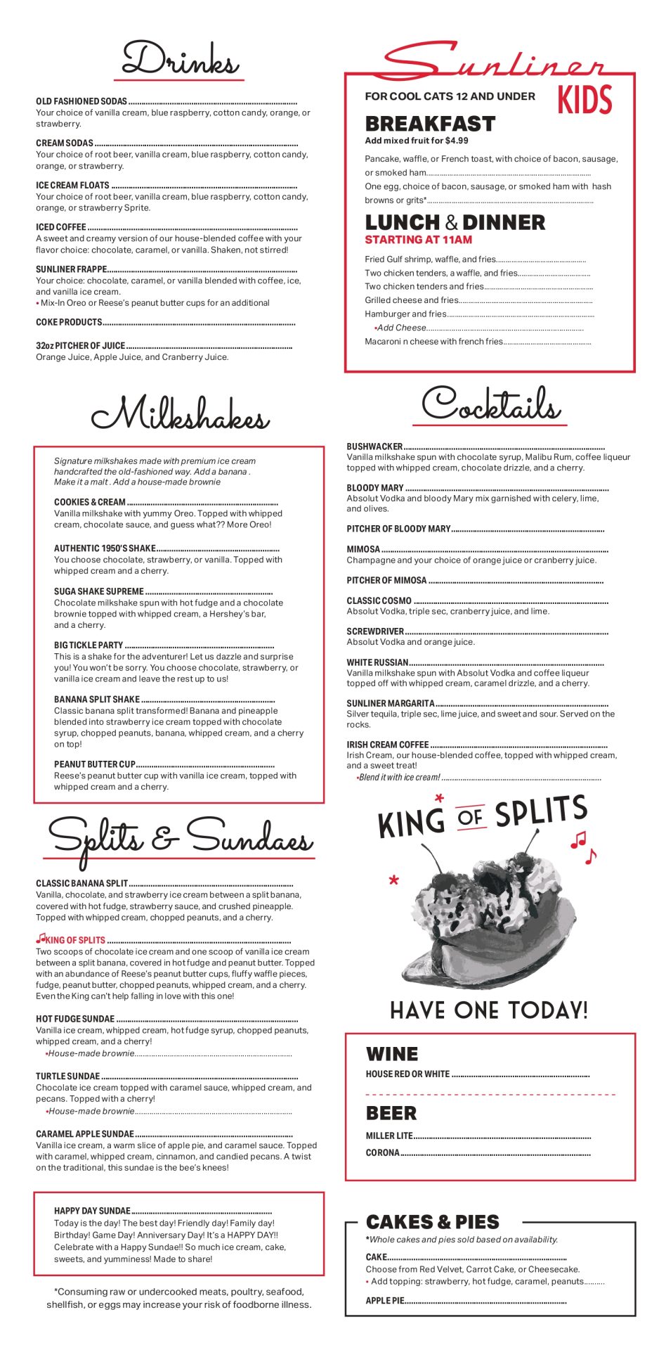 The Sunliner Diner, in the heart of the beautiful Gulf Shores, Alabama, is turning back the hands of time – to the 1950s! Located just walking distance to the beautiful white sands of Gulf Shores, The Sunliner Diner is the quintessential symbol of American culture, where family and friends can connect over hamburgers, all-day breakfast and milkshakes. Come and have a seat, enjoy a tasty treat- and throw some quarters in the jukebox. Visit our Gift Shop to take your memories of a swell time home with you!